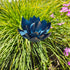 This hand-painted metal lotus flower, with its calming blue tones, is designed to bring beauty and tranquility to your outdoor space.