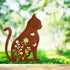 - Sitting cat metal stake with stylised bird & butterfly motifs